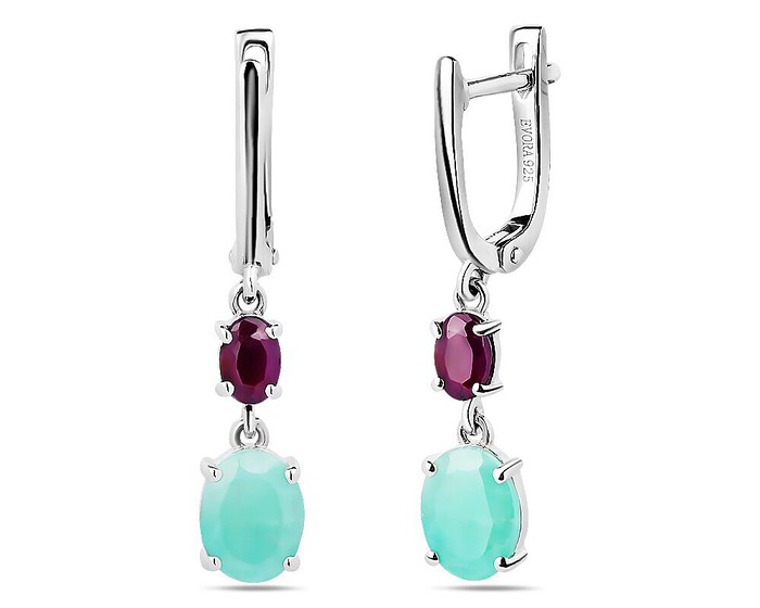 Серьги, арт.658667 Серебро Серебро 925, 4,33 гр., изумруд берилл , рубин корунд
