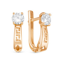 Серьги из золочёного серебра с натуральным прессованным янтарём, фианитами и род