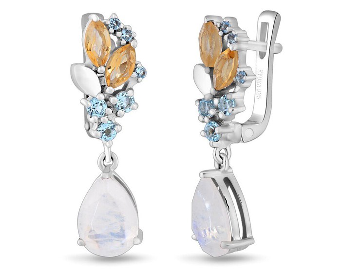 Серьги, арт.656237 Серебро Серебро 925, 5,52 гр., лунный камень , топаз , цитрин , нанотопаз