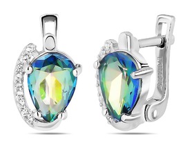 Серьги из серебра с кристаллом Премиум Австрия Радуга родированные 925 пробы С-0