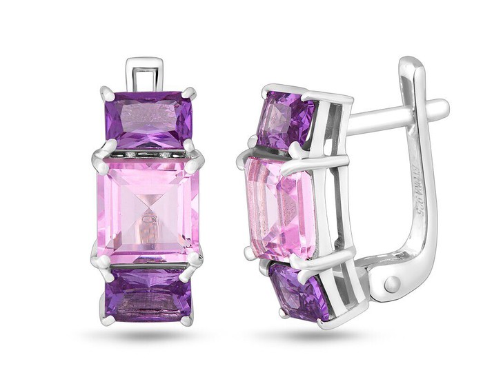 Серьги, арт.656821 Серебро Серебро 925, 4,61 гр., морганит , синт.александрит