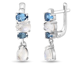 Серьги из серебра с белым перламутром и фианитами родированные 925 пробы С-4532-