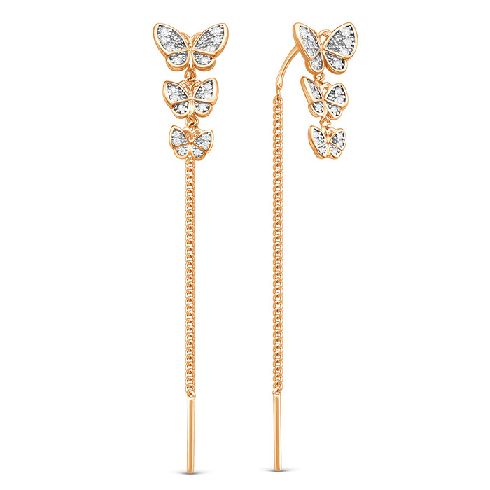 Заказать Серьги-продёвки длинные из золочёного серебра с фианитами и родированием - Бабоч