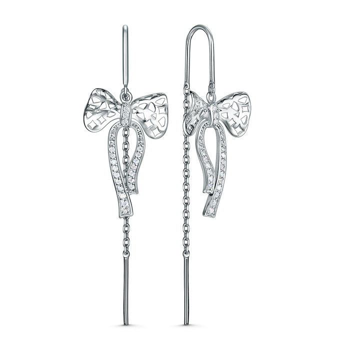 Серьги-продёвки из серебра с фианитами родированные - Банты 221-10-269р