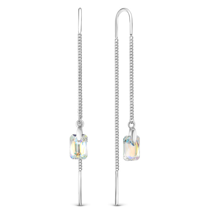 Серьги-продёвки из серебра с кристаллами Премиум Австрия Северное сияние родиров
