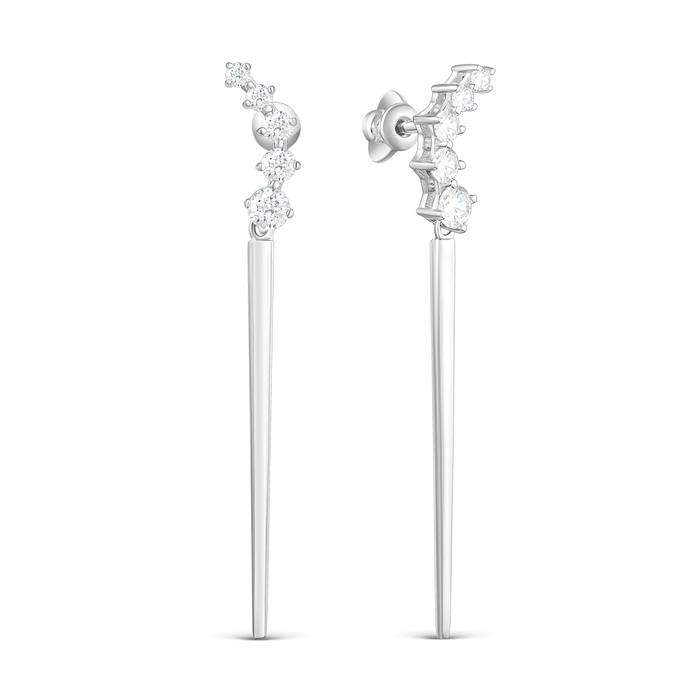 Совместные покупки Симферополь Ювелирные украшения и бижутерия Серьги — Серьги-пусеты длинные из серебра с фианитами родированные 925 пробы с-7248р200