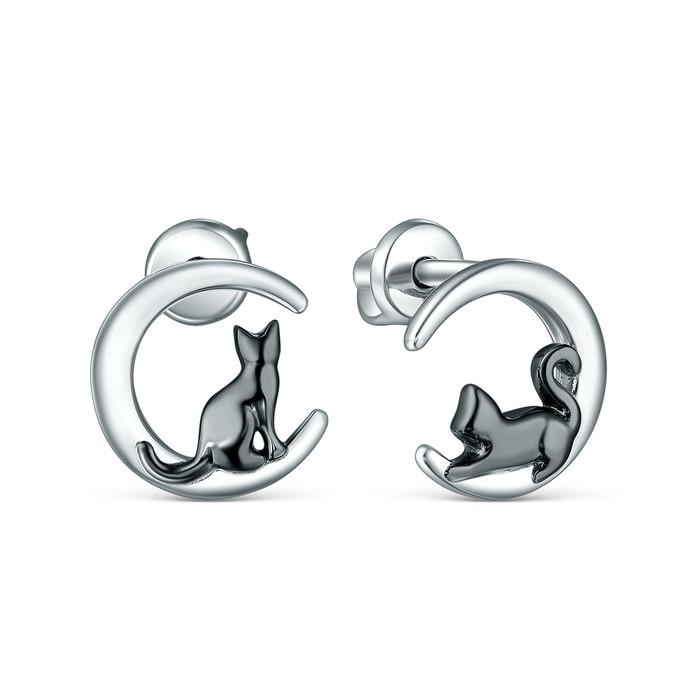 Серьги-пусеты из серебра родированные - Чёрные кошки С-3512рч