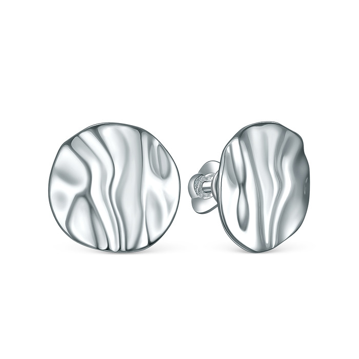 Серьги-пусеты из серебра родированные - Круги, эффект мятого металла С-7562р