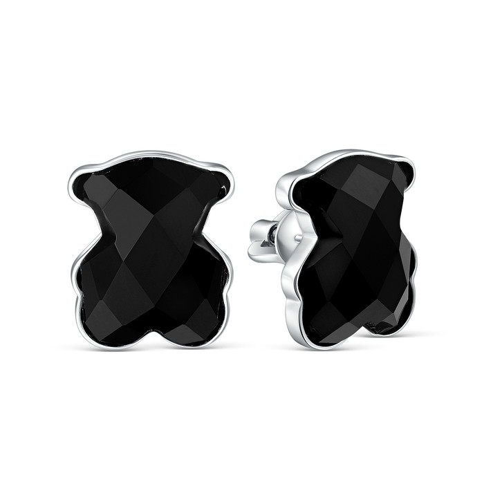 Совместные покупки Симферополь Ювелирные украшения и бижутерия Серьги — Серьги-пусеты из серебра с агатом родированные - Мишки 925 пробы Ts-15-02Ar