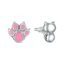 Серьги-пусеты из серебра с эмалью родированные - Лапка и Кошка 2110130