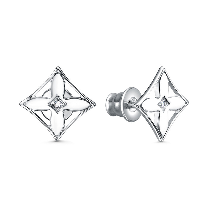 Совместные покупки Симферополь Ювелирные украшения и бижутерия Серьги — Серьги-пусеты из серебра с фианитами родированные - Клевер 925 пробы 221-10-052р