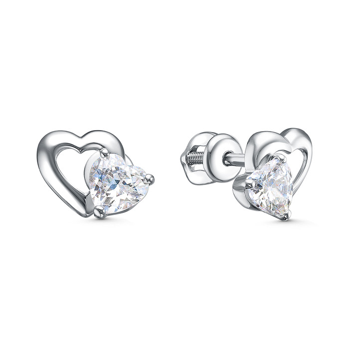 Совместные покупки Симферополь Ювелирные украшения и бижутерия Серьги — Серьги-пусеты из серебра с фианитами родированные - Сердца 925 пробы С-4755-Р