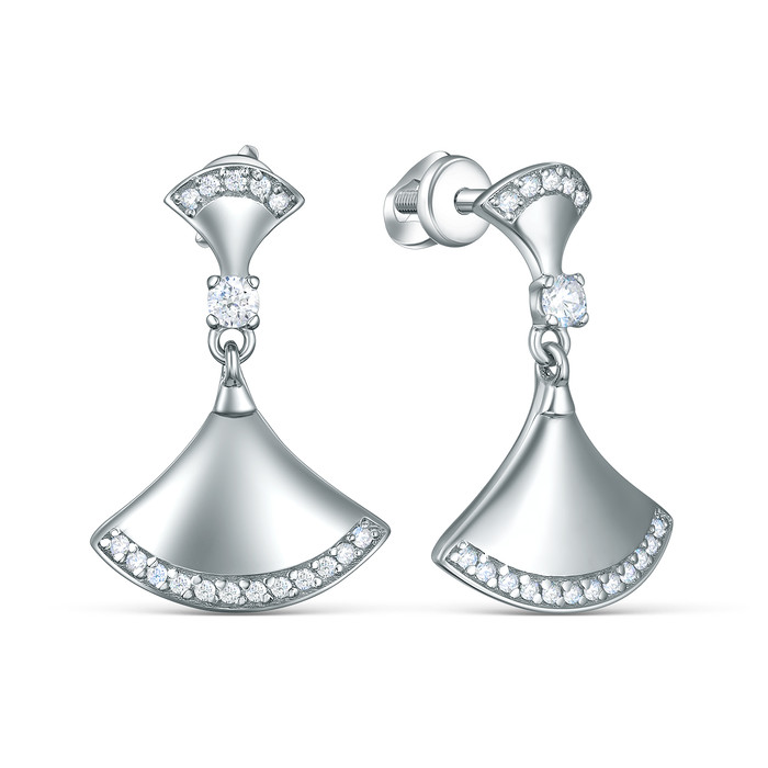 Совместные покупки Симферополь Ювелирные украшения и бижутерия Серьги — Серьги-пусеты из серебра с фианитами родированные - Вееры С-4726-Р