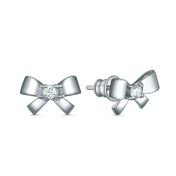 Совместные покупки Симферополь Ювелирные украшения и бижутерия Серьги — Серьги-пусеты из серебра с фианитом родированные - Банты 221-10-256-1р