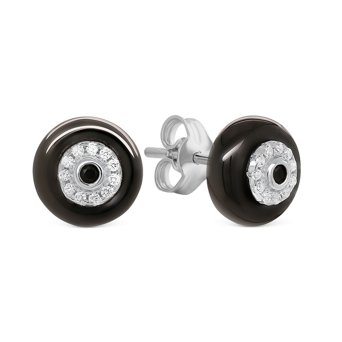 Серьги-пусеты из серебра с керамикой, куб.цирконием и кварцем родированные 925 п