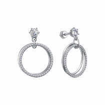 Серьги-пусеты из серебра с кристаллами премиум Австрия цв.Серебряная ночь родиро