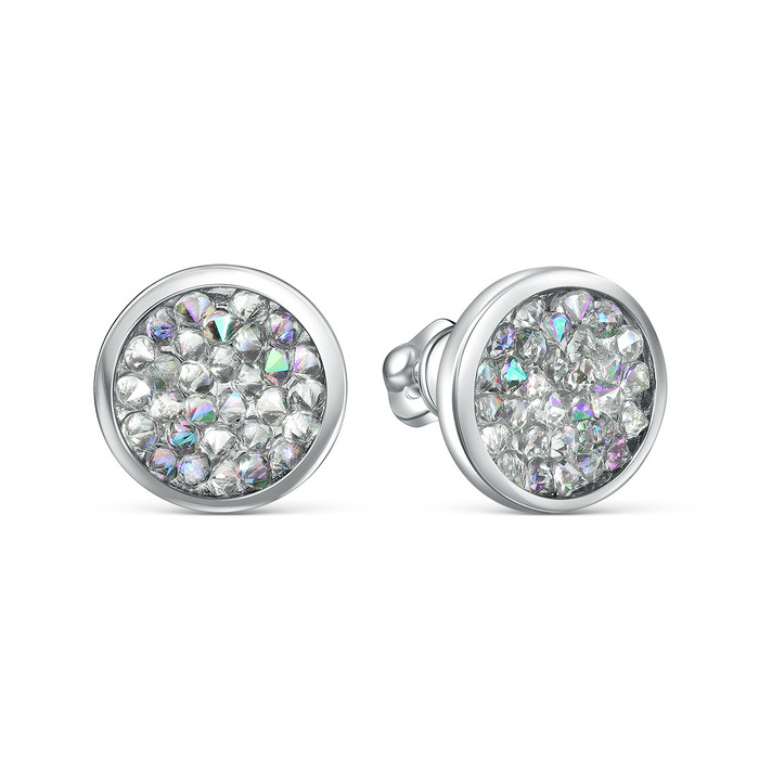 Серьги-пусеты из серебра с кристаллом Премиум Австрия Радуга родированные 925 пр