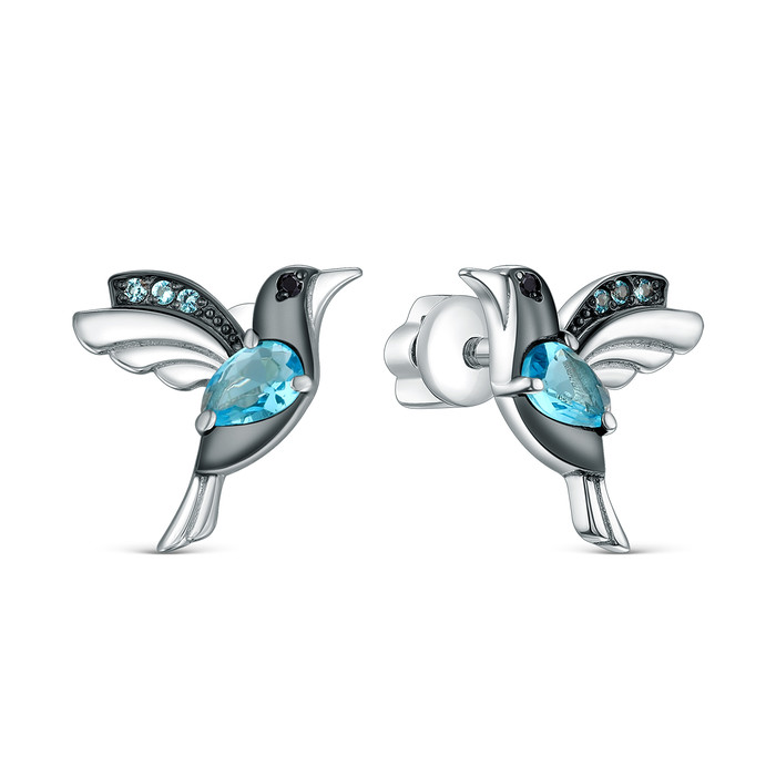 Совместные покупки Симферополь Ювелирные украшения и бижутерия Серьги — Серьги-пусеты из серебра с плавленым кварцем цвета топаз, плавленым кварцем чёрн