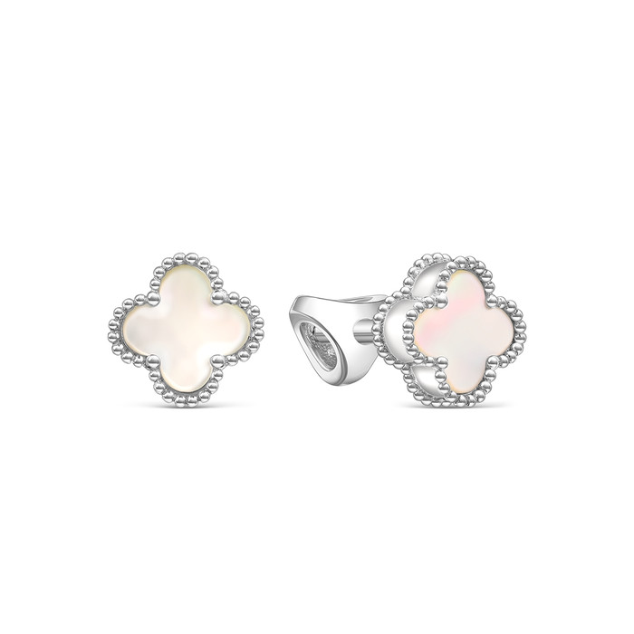 Совместные покупки Симферополь Ювелирные украшения и бижутерия Серьги — Серьги-пусеты Клевер Четырехлистник из серебра с белым перламутром родированные
