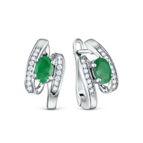 Серьги из серебра с изумрудом и кубическим цирконием 925 пробы GTE-12566F-E