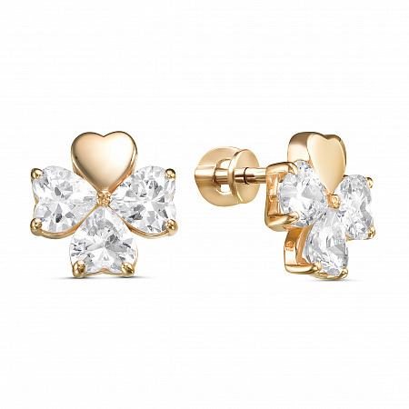 Серьги с фианитом позолоченные серебро 925*