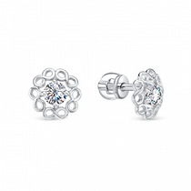 Серьги с фианитом родированные серебро 925*