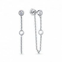 Серьги из серебра с натуральной бирюзой, нанобирюзой и фианитами родированные С-