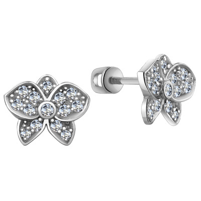Серьги с фианитом родированные серебро 925*