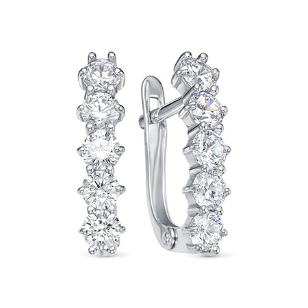 Серьги с фианитом родированные серебро 925*