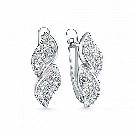 Серьги с фианитом родированные серебро 925*