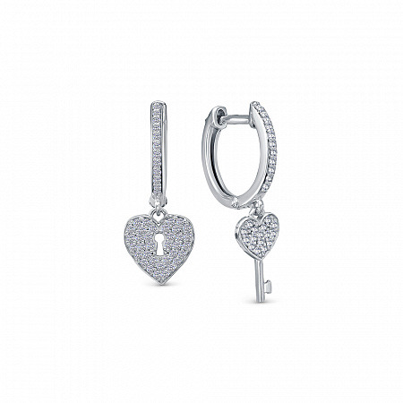Серьги с фианитом родированные серебро 925*