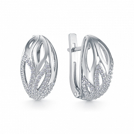 Серьги с фианитом родированные серебро 925*
