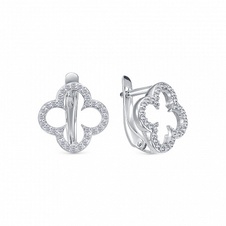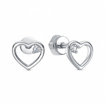 Серьги с фианитом родированные серебро 925*