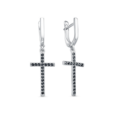 Серьги с фианитом родированные серебро 925*