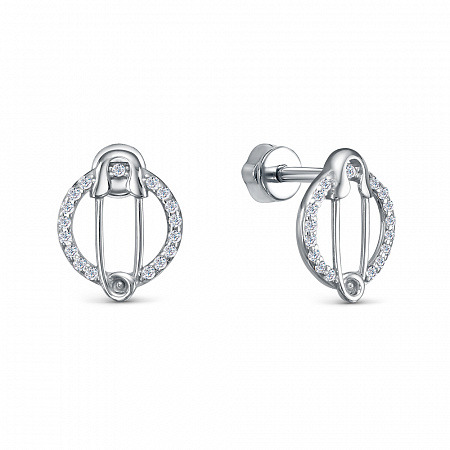 Серьги с фианитом родированные серебро 925*
