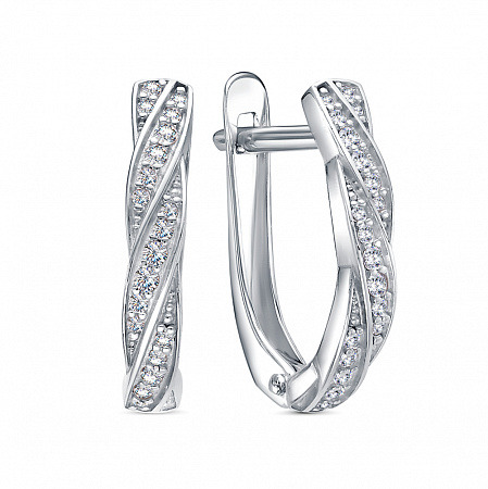 Серьги с фианитом родированные серебро 925*