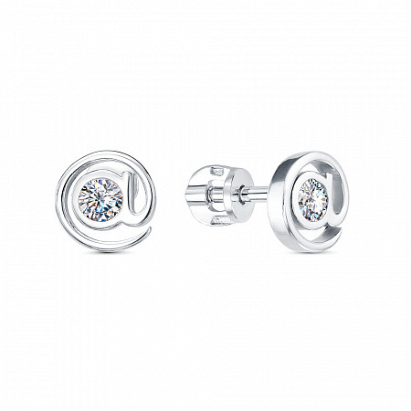 Серьги с фианитом родированные серебро 925*
