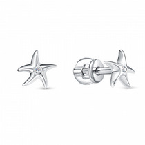Серьги из серебра с нат. изумрудом и фианитами родированные