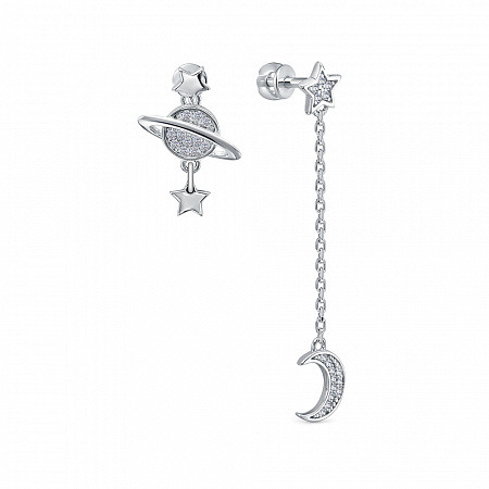 Серьги с фианитом родированные серебро 925*