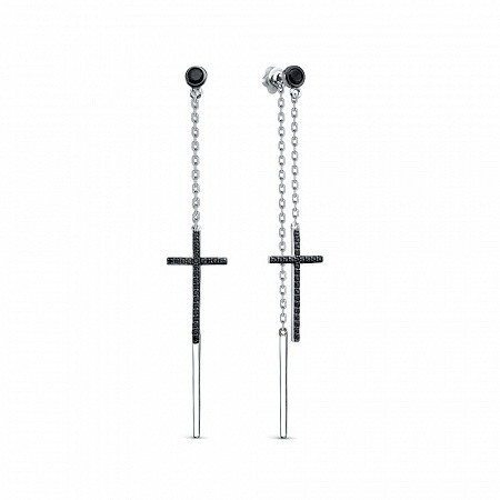 Серьги с фианитом родированные серебро 925*