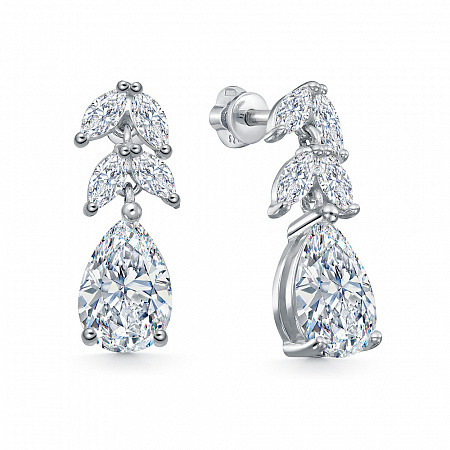 Серьги с фианитом родированные серебро 925*