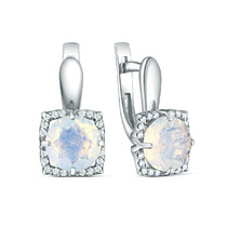 Серьги из серебра с плавленым кварцем цвета лунный молочный и фианитами родирова