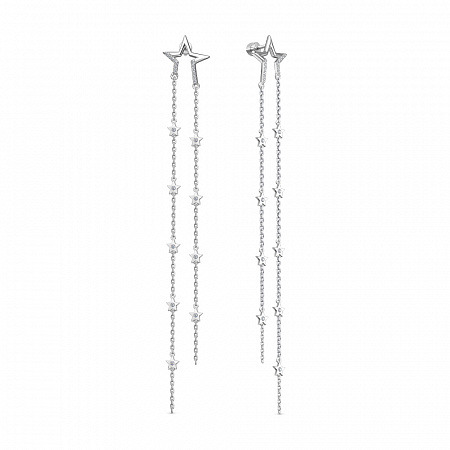 Серьги с фианитом родированные серебро 925*
