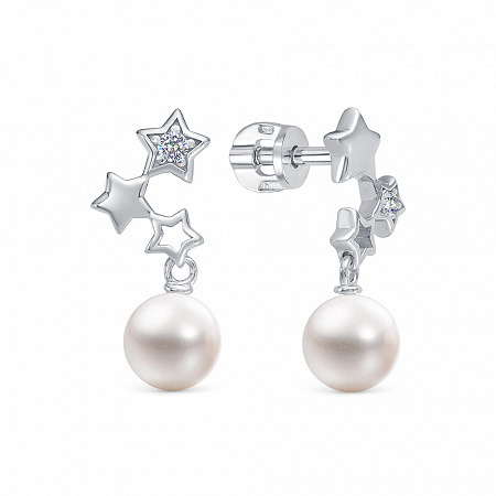 Серьги с фианитом родированные серебро 925*