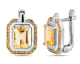 Серьги восьмиугольники из серебра с фианитами родированные 925 пробы 2-016р200