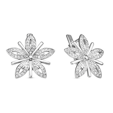 Серьги с фианитом родированные серебро 925*