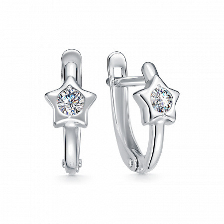 Серьги с фианитом родированные серебро 925*