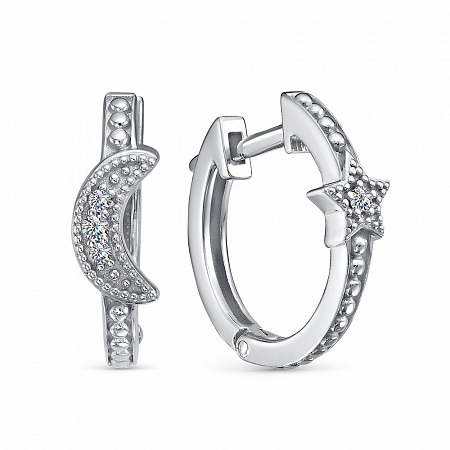 Серьги с фианитом родированные серебро 925*