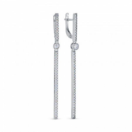 Серьги с фианитом родированные серебро 925*