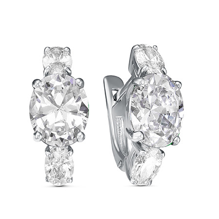 Серьги с фианитом родированные серебро 925*